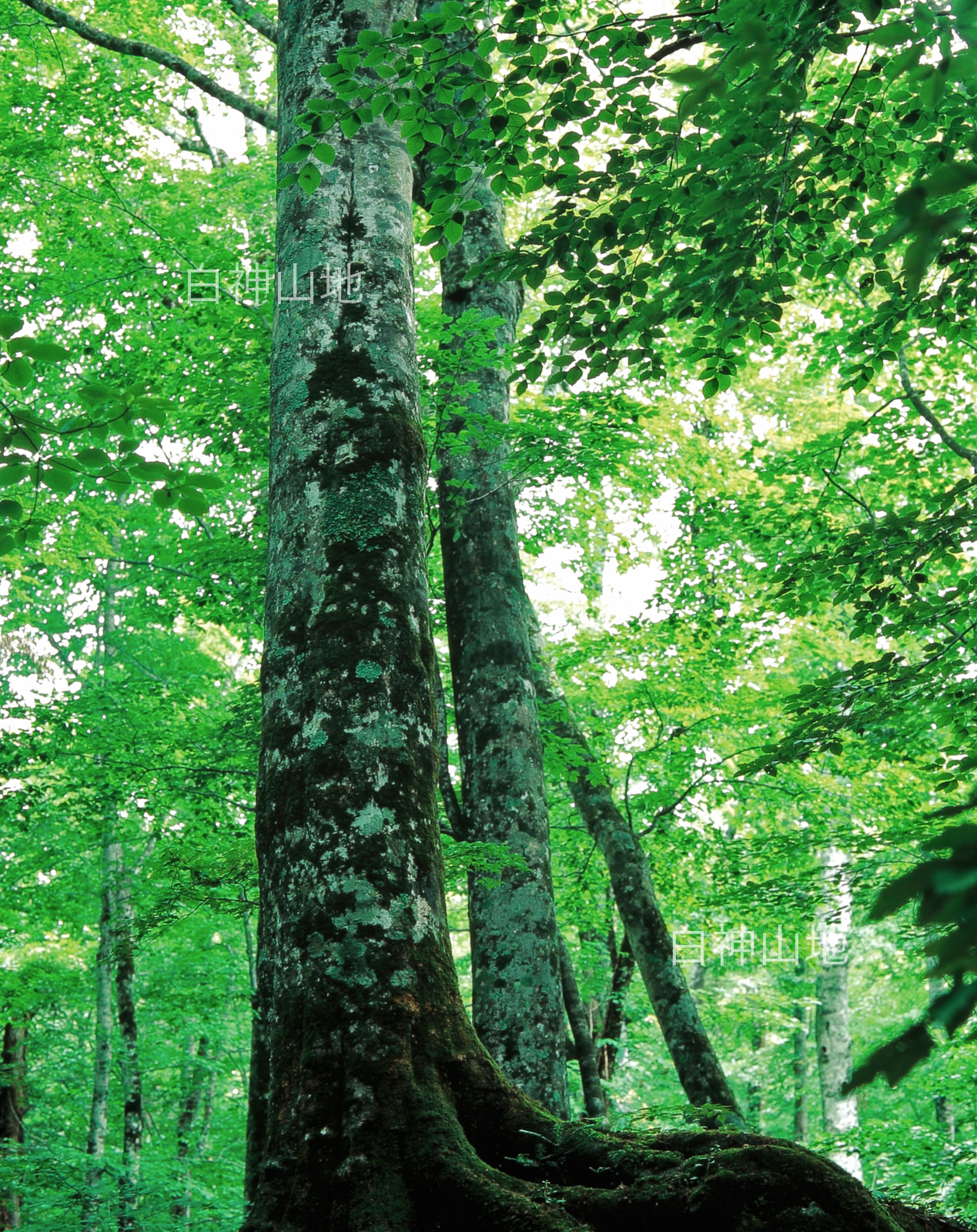 世界自然遺産「白神山地」初夏の緑深まるブナ大木の森 縦 6月
